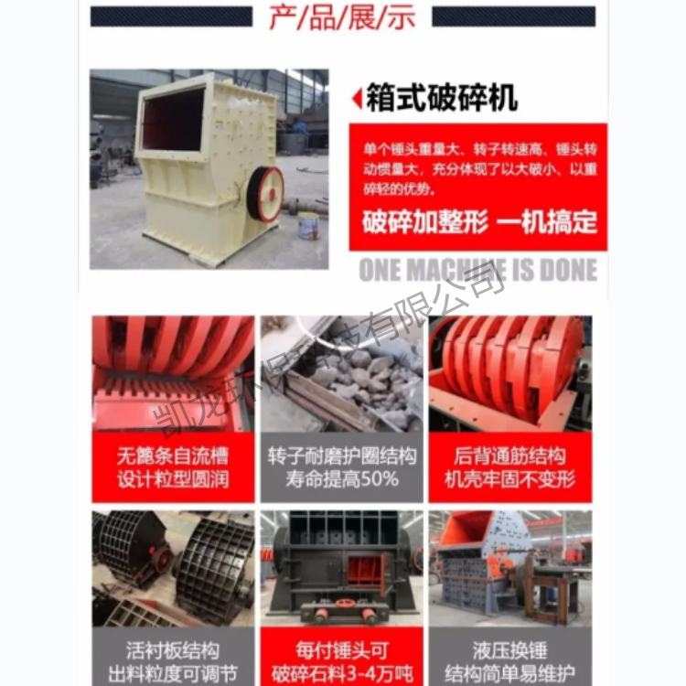 箱式破碎機(jī)該設(shè)備具有、節(jié)能、破碎比大、進(jìn)料粒度大、出料粒度均勻、過(guò)粉碎現(xiàn)象少、結(jié)構(gòu)緊湊、維護(hù)和更換易損件方便等特點(diǎn)。其抗壓強(qiáng)度不超過(guò)200兆帕的石灰石、巖 石、石膏、煤矸石等物料的破碎,該產(chǎn)品主要可廣泛用于各種采石場(chǎng)、石料生產(chǎn)線、制沙生產(chǎn)線、選礦破碎設(shè)備使用。