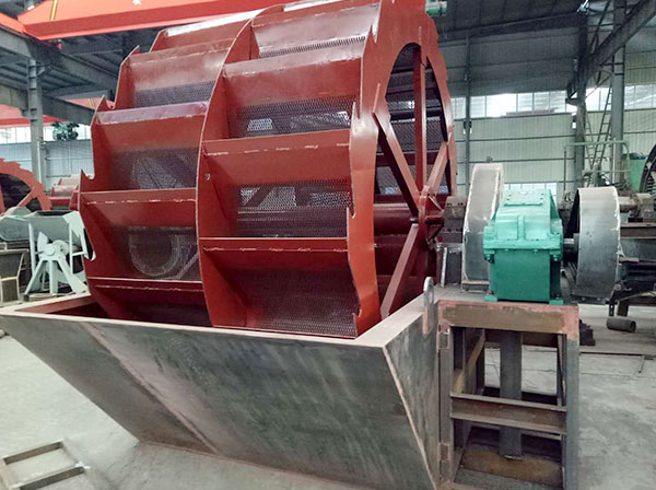 輪式洗砂機是配合篩沙機或制砂機使用的一種水洗式洗砂設(shè)備,可以將制砂機制出的混合砂子洗去其中的石粉、泥土或其他雜質(zhì),從而提高砂子的質(zhì)量。