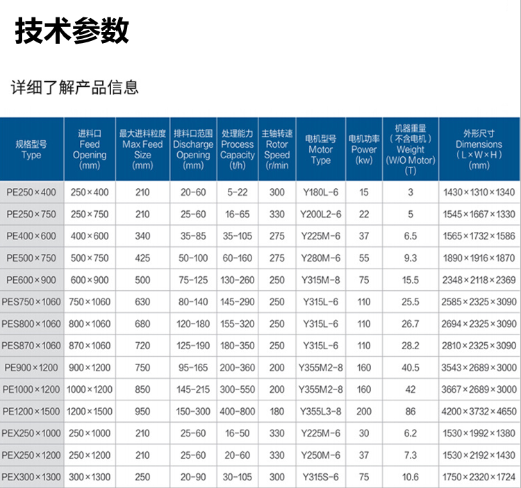 破碎機按其外形規(guī)格尺寸及時產(chǎn)量高低的不同,?蓜澐殖龊芏嘁(guī)格型號,另外,為了滿足部分高要求客戶生產(chǎn)需求,市場現(xiàn)又推出了一類移動式鄂破機,鄂破機參數(shù)詳情如下表: