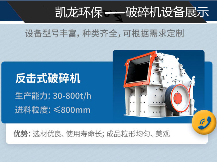 反擊式破碎機(jī)設(shè)備體積小、構(gòu)造簡單、破碎比大、耗能少、生產(chǎn)能力大、產(chǎn)品粒度均勻、并有選擇性的碎礦作用,是很有發(fā)展前途的設(shè)備。