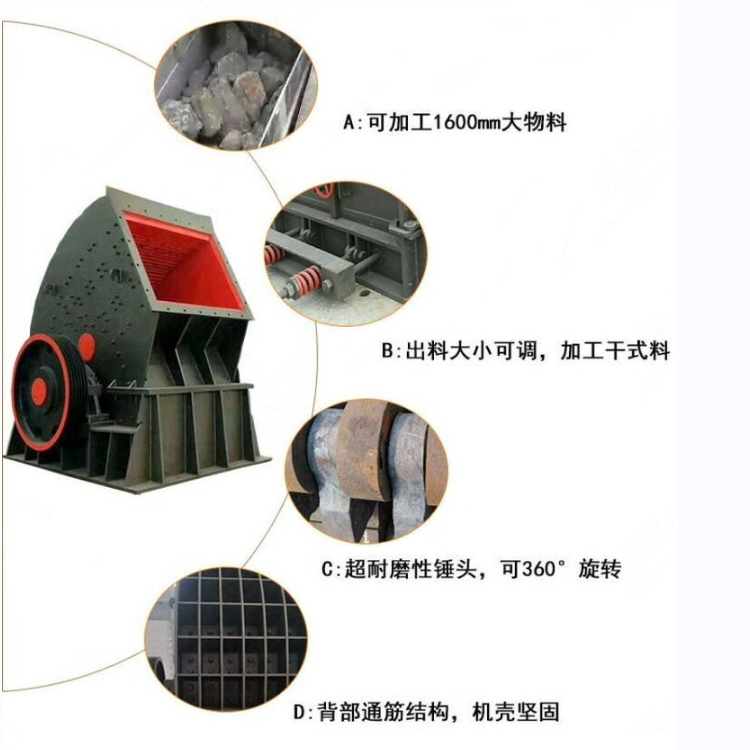 錘式破碎機該破碎機采用沖擊破碎原理,其打擊件的磨損速度較快,從而限制了重錘破碎機所生產物料的種類,而只能破碎一些中硬度的物料。特別適應于破碎石灰石及抗壓強度低于200MPa中等硬度的石料。