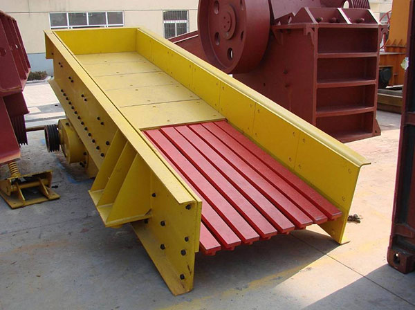振動給料機(jī)在生產(chǎn)流程中用于把塊狀、顆粒狀物料從貯料倉中均勻、定時、連續(xù)地送入受料裝置。在砂石生產(chǎn)線中可為破碎機(jī)械連續(xù)均勻地喂料,并對物料進(jìn)行粗篩分,廣泛應(yīng)用于冶金、煤礦、選礦、建材、化工、磨料等行業(yè)的破碎、篩分聯(lián)合設(shè)備中。